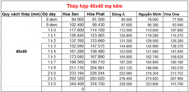 Thép hộp 40×40 có kích thước chuẩn là 6 mét, có thể cắt theo yêu cầu của bạn (3 mét, 2 mét…)