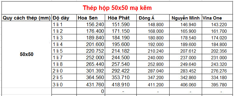 Báo giá thép hộp 50×50